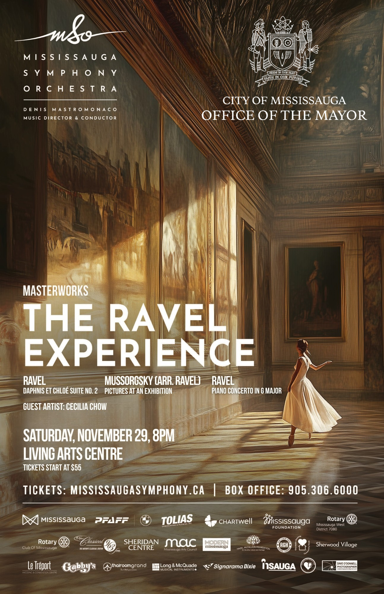 Join Mayor Carolyn Parrish and the MSO for The Ravel Experience, a concert that explores Ravel’s extraordinary gift for creating rich, imaginative soundscapes.