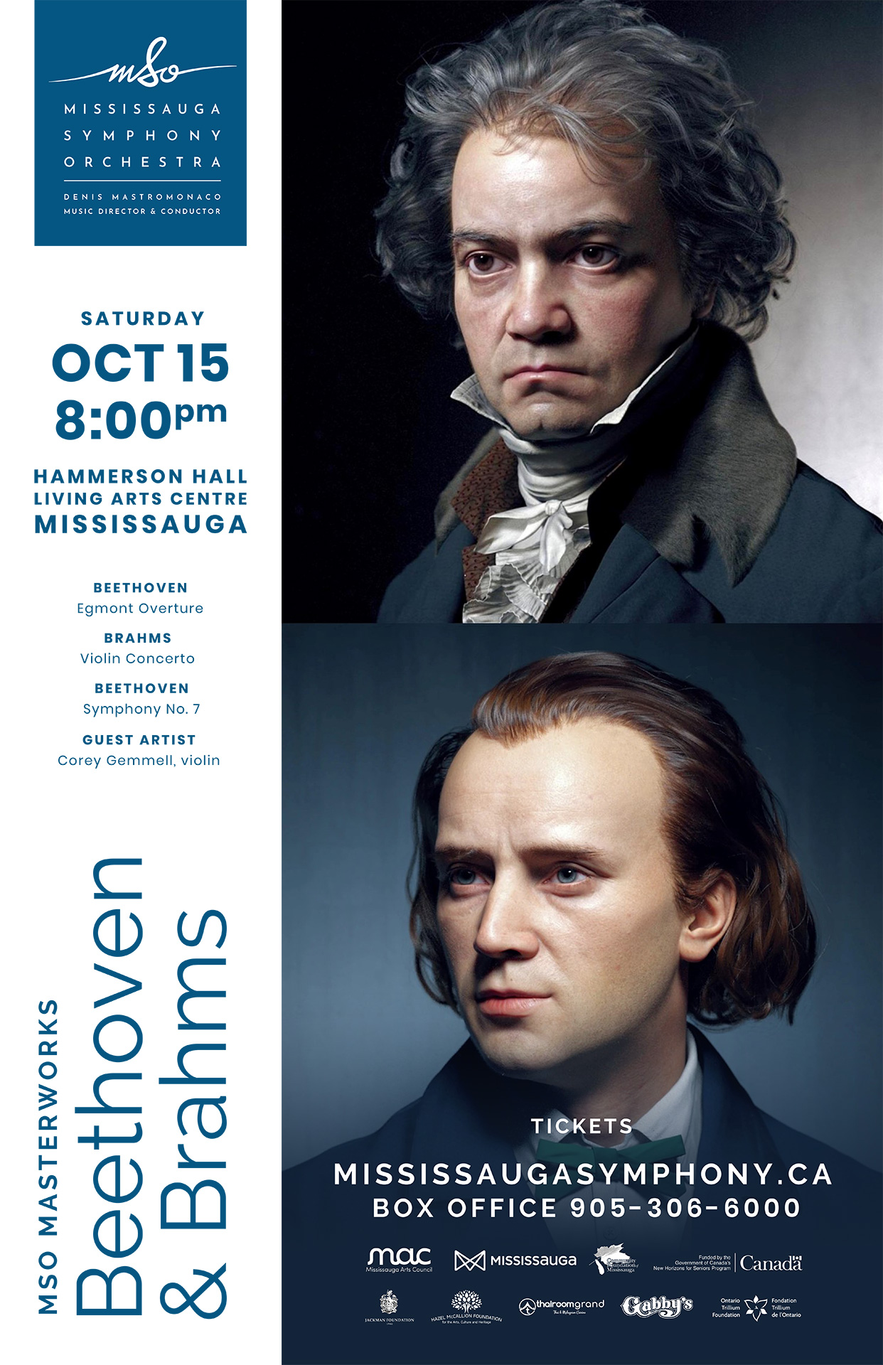 The Mississauga Symphony Orchestra begins the 2022/2023 concert season on October 15 with a celebration of two of the greatest composers in the history of classical music – Beethoven and Brahms. Beethoven’s spirited seventh symphony anchors an exciting program that will also feature a performance of Brahms’ magnificent violin concerto by MSO concertmaster, Corey Gemmell.